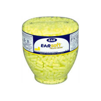 3M E-A-RSoft Yellow Neon Uncorded Earplugs in a refill container to fit One Touch dispenser 391-1000.