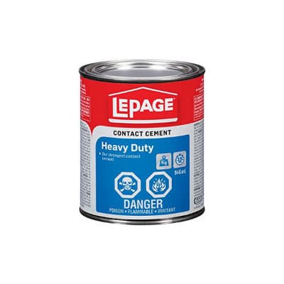 Lepage Heavy Duty Contact Cement Is A Premium Grade Solvent-Based Adhesive That Offers A High Strength Bond Resistant To Heat, Creep, Water And Oil. It Dries Quickly And Bonds On Contact Thus Eliminating Clamping. Recommended For Bonding Plastic Laminates, Veneers, Plywood, Particleboard, Wallboard, Metals (Ferrous And Non Ferrous), Cork, Fabric And Rubber. Ideal For Bonding Decorative Laminates Or Wood Veneer To Cabinets, Counter Or Desk Tops And Other Large Flat Surfaces Where Clamping Is Not Possible. Use For Jobs Around The Home Such As Repairing Fabric Seat Covers, Shoes, Weather Stripping And Replacing Loose Flooring.